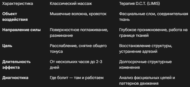 4. Сравнение: Классический массаж vs. Фасциальная терапия D.C.T.